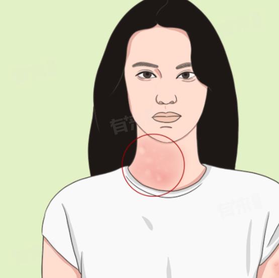 5、荨麻疹:多由食物、药物、感染等因素引起,表现为脖子皮肤突然出现瘙痒,随即出现大小不等的风团,呈圆形、椭圆形或不规则形,可孤立分布或融合成片,皮肤表面凹凸不平,呈橘皮样外观,数小时内风团可自行消退,不留痕迹,但容易反复发作。