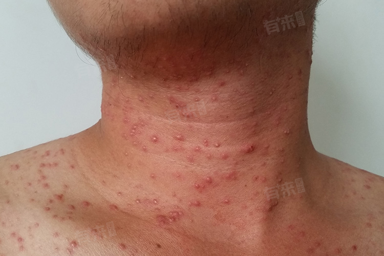 - 如果脖子上的红色痘痘呈带状分布,伴有剧烈疼痛,可能是带状疱疹,由水痘-带状疱疹病毒感染引起,此外,系统性疾病也可能在皮肤上表现为红色痘痘,通常为重度,需要及时就医,带状疱疹若不及时治疗可能引发并发症。