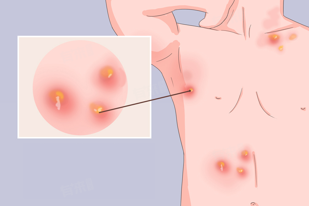 - 疖肿同样多由金黄色葡萄球菌感染引起,但通常是毛囊深部及其周围组织的化脓性炎症。与毛囊炎相比,疖肿的感染范围更广、程度更严重。皮肤的轻微损伤、皮脂腺分泌旺盛、局部卫生不良等因素都可能促使疖肿的发生。