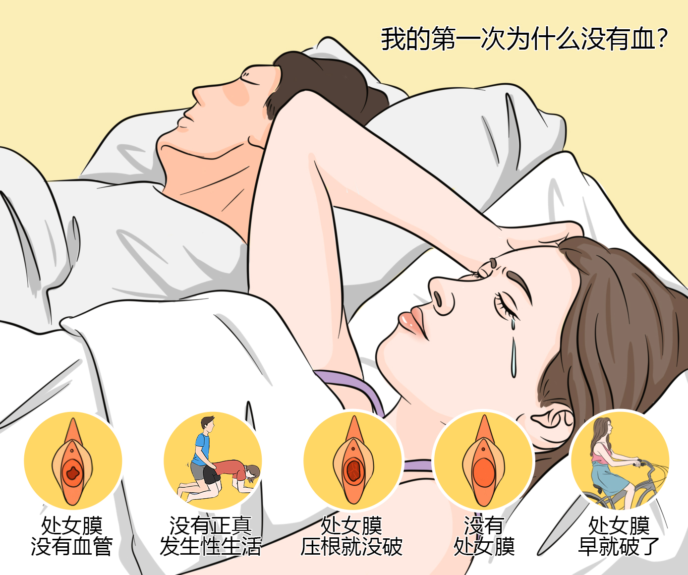 2、性行为方式:第一次性生活时,性行为比较轻柔、缓慢,阴茎没有对处女膜造成足够的冲击力,也会出现此类情况。