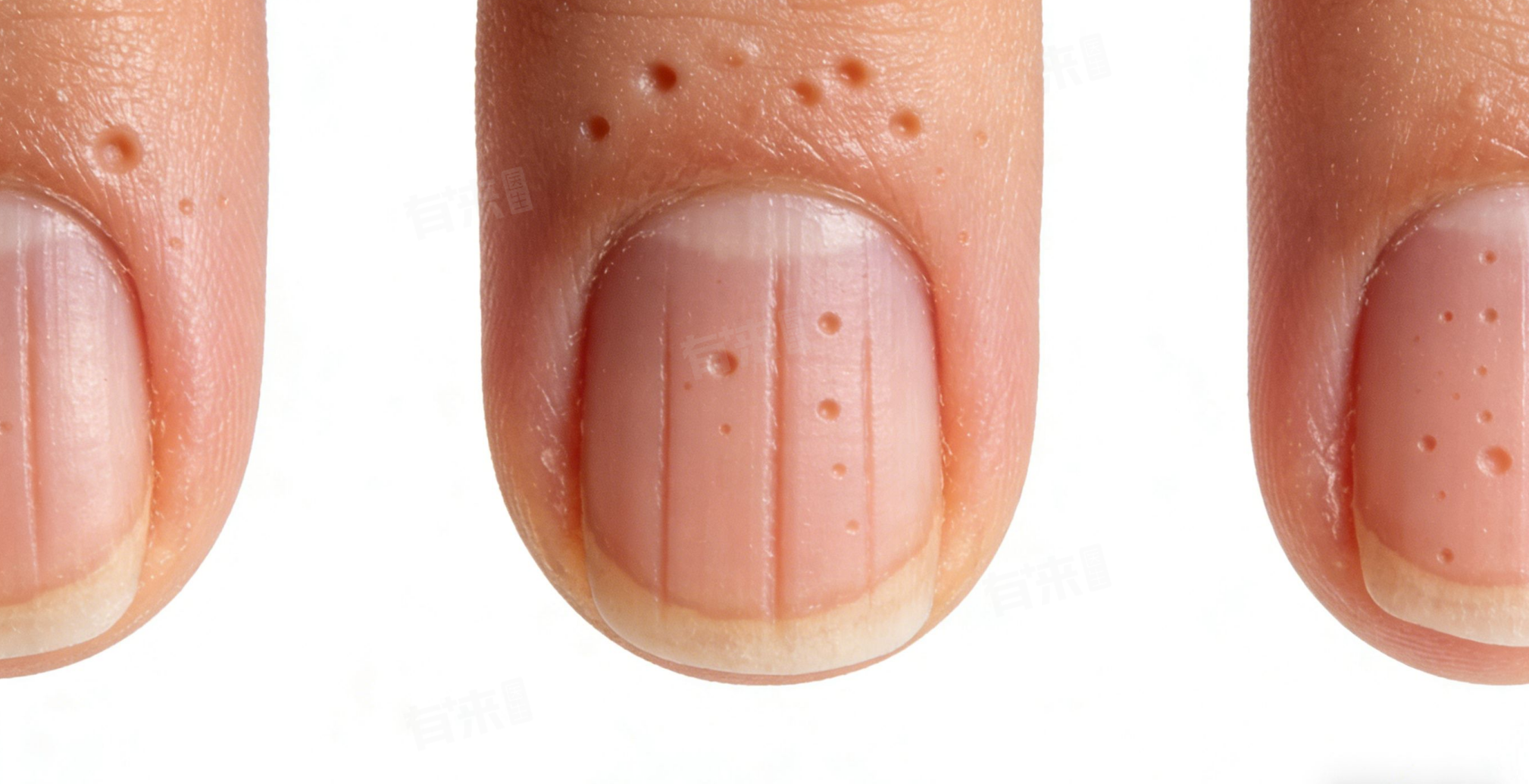 2、皮肤疾病影响:银屑病、湿疹、手癣等皮肤疾病,会累及指甲周围的皮肤和甲床,破坏指甲的正常生长环境,导致指甲出现凹陷、增厚、变色等异常,银屑病患者常出现点状凹陷。