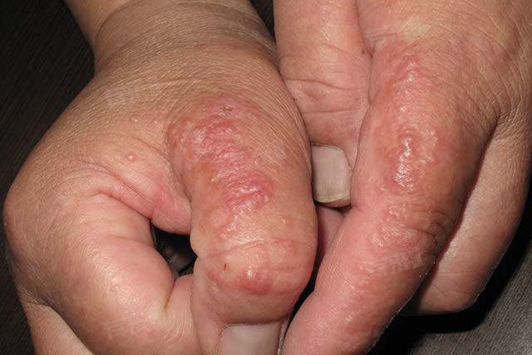 - 手癣:手癣主要由真菌感染引起,其中以红色毛癣菌最为常见,主要通过接触传染,如共用毛巾、浴巾、拖鞋等生活用品,或者在公共场所接触到被污染的物品。初期表现为手掌的部位出现小水疱,水疱干涸后可出现脱屑,并逐渐向四周蔓延。