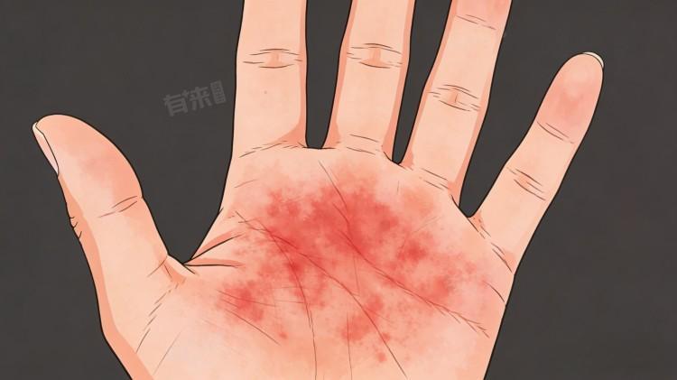 5、掌跖脓疱病:一种慢性炎症性皮肤病,主要累及手掌和足底,表现为手心发红,伴随针尖至米粒大小的无菌性脓疱,脓疱干涸后会出现脱屑、结痂,常伴随明显瘙痒或灼痛感。该病病程迁延反复,虽不涉及系统疾病,但会严重影响手部功能和生活质量,且治疗难度相对较大。