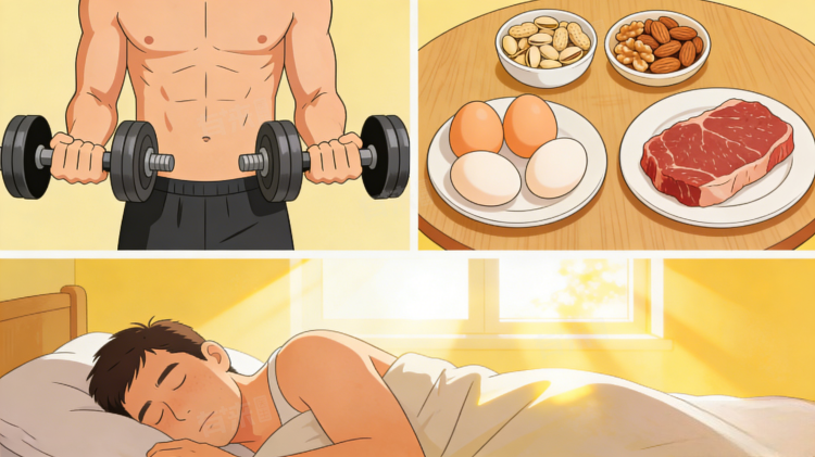 2、规律运动锻炼:坚持进行力量训练,如深蹲、卧推、硬拉等,能刺激睾丸分泌雄性激素,同时提升肌肉量,辅助调节激素水平;每周运动3-4次,每次30分钟以上,避免过度运动。