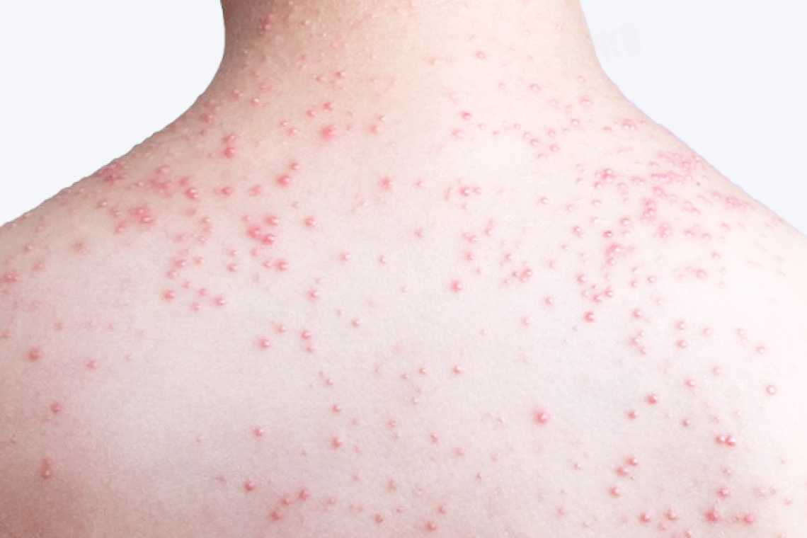 - 丘疹:随着病情发展,毛囊周围会形成红色丘疹,丘疹大小不一,可能会在皮肤表面形成凸起的红色小肿块。