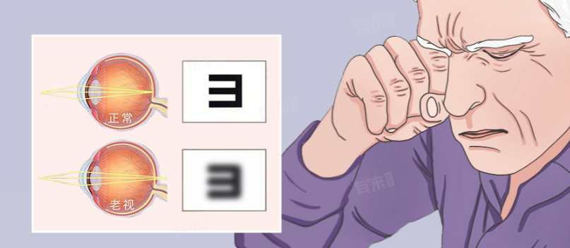 - 老花眼是一种生理现象,主要因年龄增长,眼睛晶状体逐渐硬化、弹性减弱,睫状肌功能衰退,导致眼睛调节能力下降。一般在40岁左右开始出现,表现为看近处物体模糊,需将物体拿远才能看清。