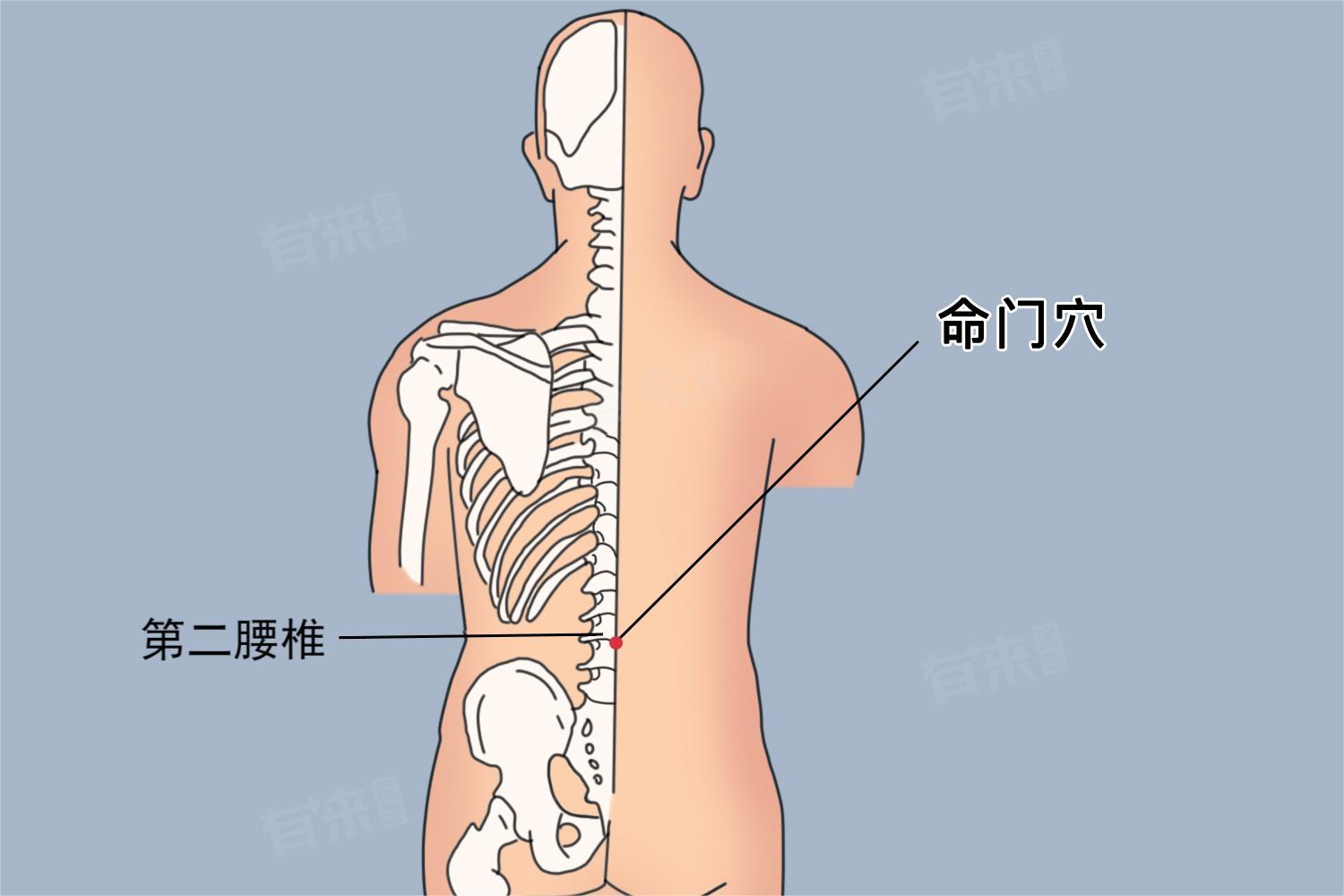 4、命门穴:位于第二腰椎棘突下凹陷中,具有温肾壮阳、固精止带的功效,也具有调经止痛的作用。适用于腰膝酸软、腹痛等不适症状的崩漏患者。