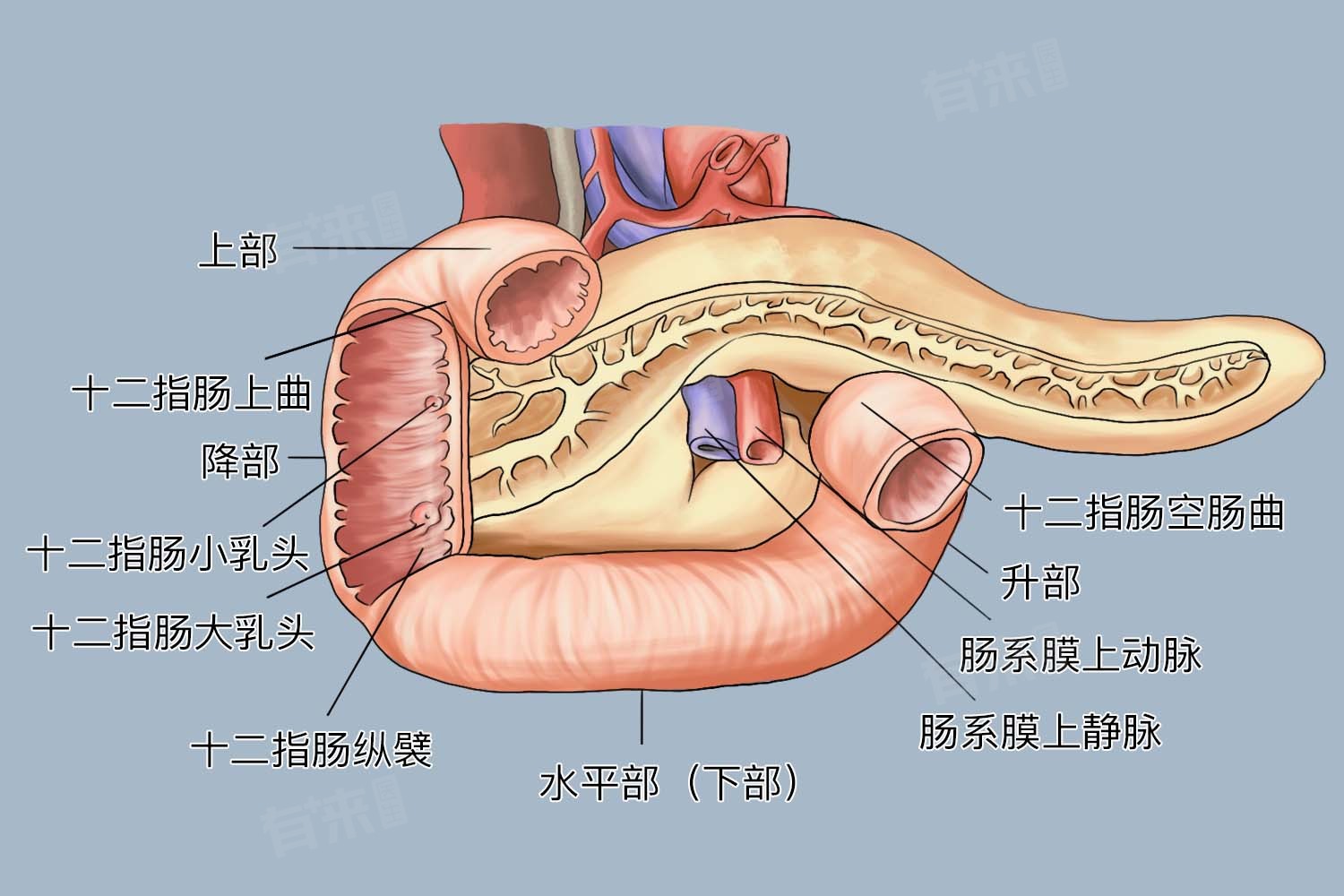 十二指肠大乳头周围的组织也可能发生病变,影响胆汁和胰液的正常排泄。例如,十二指肠溃疡如果累及十二指肠大乳头附近区域,可能导致出血、穿孔等严重并发症,影响胆汁和胰液的排出,进而影响消化功能。
