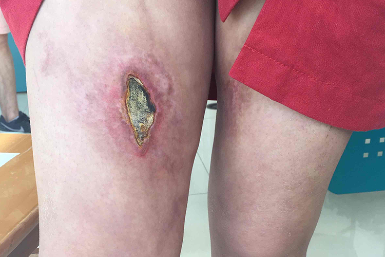 5、局部感染:若伤口受到细菌感染,可能会产生脓性分泌物,表现为白色的覆盖物,且伤口周围可能会出现红肿、疼痛、发热等症状。此时需要及时清创,去除感染坏死组织,并配合医生使用抗生素进行治疗。
