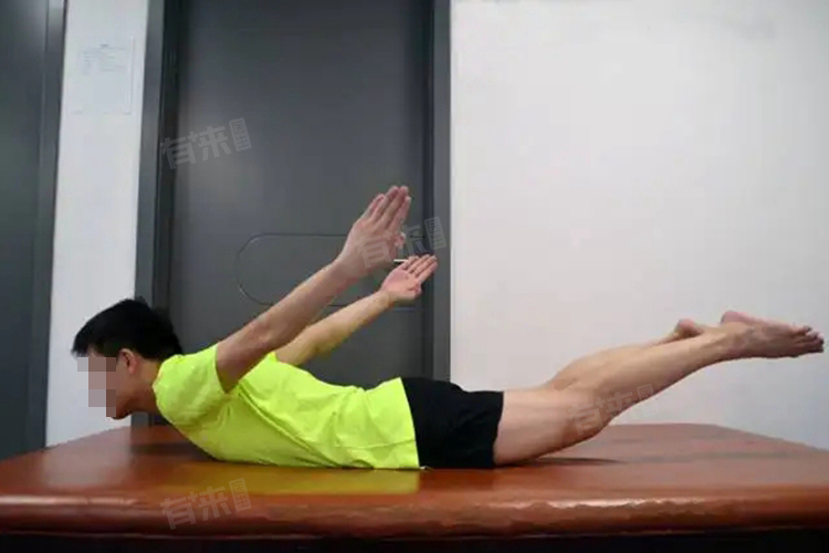 - 动作执行:双臂轻轻抬起,手臂向上的同时轻轻抬头,双肩向后向上收屈。双脚轻轻抬起,脚底部肌肉收缩,尽量让肋骨和腹部来支撑身体。持续3-5秒,然后放松肌肉、四肢和头部回归原位,休息3-5秒再做。