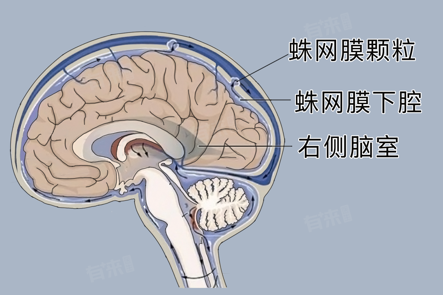 蛛网膜下腔是人体解剖结构中一个重要的组成部分,蛛网膜下腔位于蛛网膜和软脑膜之间,是一个充满脑脊液的潜在间隙。它环绕着整个脑和脊髓,就像一个 “水囊” 将中枢神经系统包裹在其中。