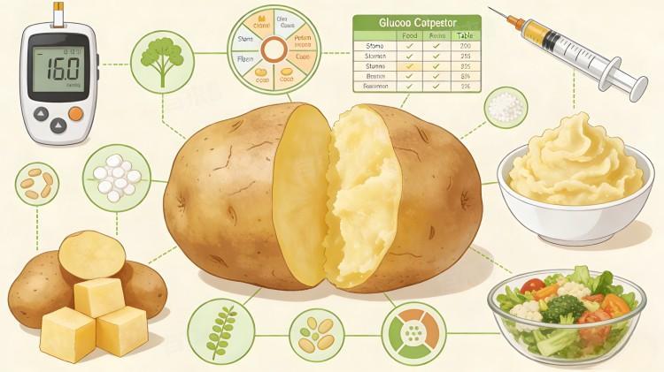 此外,糖尿病患者食用土豆后,需监测血糖变化,根据自身血糖反应调整食用量。若食用后血糖升高明显,需减少摄入量或暂停食用;若血糖控制平稳,可规律适量食用。同时,搭配富含蛋白质和膳食纤维的食物,有助于延缓血糖上升。