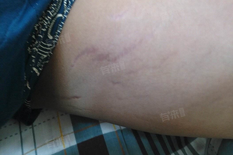 大腿上有一条一条紫色像疤痕的东西预后如何