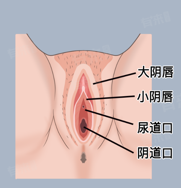 - 大阴唇位于外阴的两侧,是一对纵向隆起的皮肤皱襞,自阴阜向后延伸至会阴,像两层窗帘一样覆盖在小阴唇上面,保护小阴唇及其里面的阴道口和阴道前庭,避免外来刺激和感染。大阴唇的皮肤颜色可能因个人体质不同而有所差异,一般比周围皮肤颜色深些。
