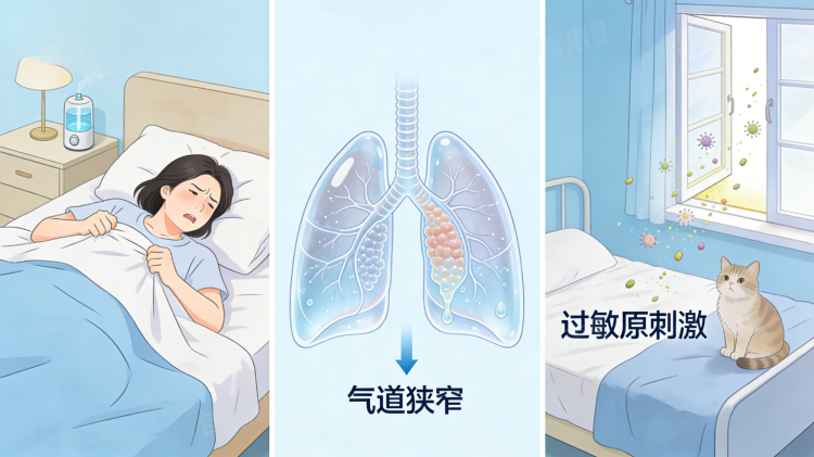 哮喘主要通过夜间气道痉挛、呼吸功能异常及躯体不适,直接干扰睡眠节律与质量,还会因睡眠中断诱发焦虑情绪,形成双向影响,其机制与气道炎症、激素分泌节律密切相关,规范管理哮喘是改善睡眠的核心。
