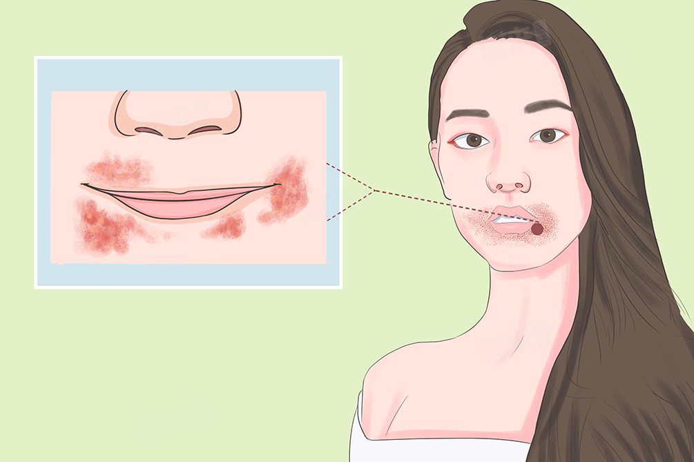 7、脂溢性皮炎:多发生于皮脂腺丰富的部位,嘴巴周围也是好发区域之一。可能与皮脂腺分泌旺盛、马拉色菌感染、免疫功能失调等有关。表现为皮肤发红、油腻、脱屑等症状。