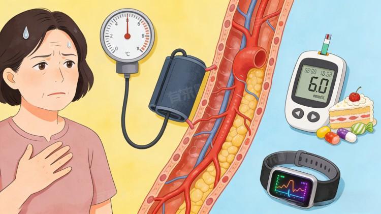 4、二者的关联性及危害:雌激素下降是二者共同的核心诱因,血管弹性下降既会导致血压升高,也会影响胰岛素的正常分泌与作用,加剧血糖异常。二者协同作用,会增加冠心病、脑梗死、糖尿病肾病等并发症的发病风险,需同时干预、同步控制。