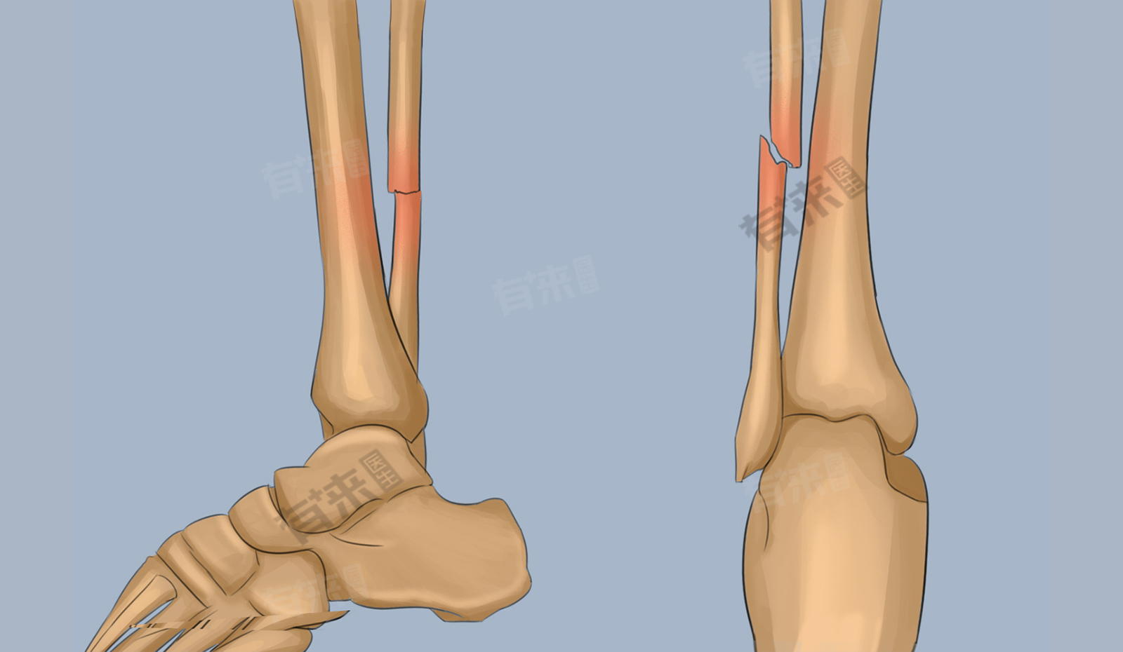 - 轻度移位骨折:骨折有轻度移位,但通过手法复位或外固定能够维持较好的位置,恢复时间会相对延长,大约6-8周骨折开始愈合,8-10周可尝试部分负重。完全正常行走可能需要12-16周。要注意观察外固定的松紧度,避免过紧或过松。