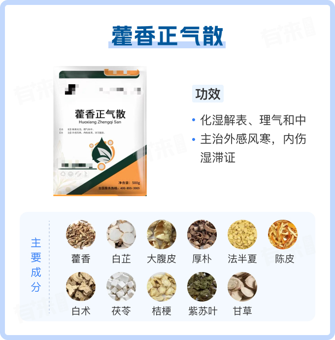 1、解表化湿:方剂中的藿香、紫苏、白芷等药物具有解表散寒、化湿和中的作用,能够发散体表的风寒,并祛除体内的湿气。这对于外感风寒、内伤湿滞引起的恶寒发热、头痛、身痛等症状有明显的缓解作用。