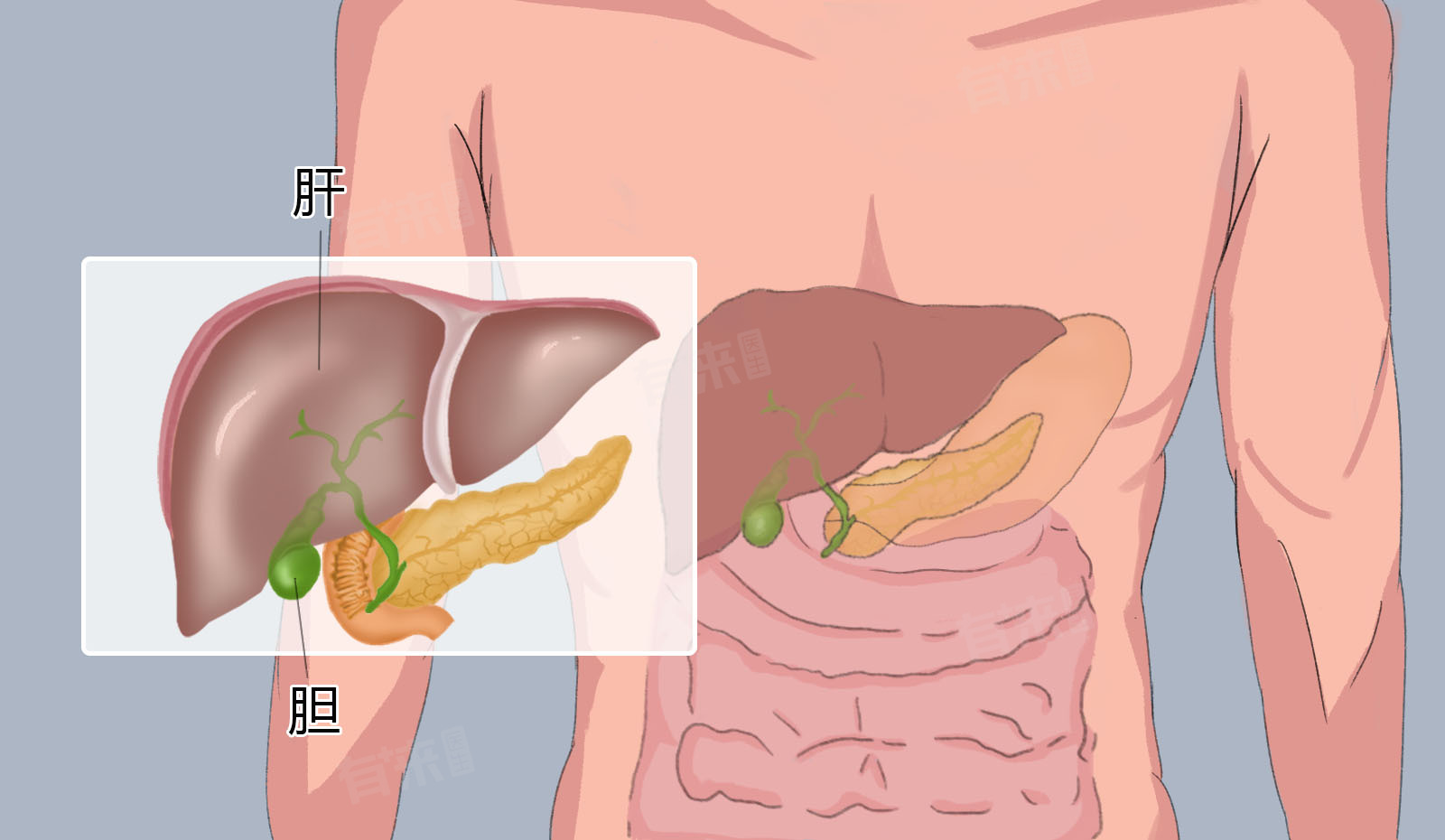- 与肝脏的关系:胆囊紧密附着于肝脏,通过胆囊管与肝总管相连。肝脏分泌的胆汁首先进入胆囊,在胆囊内进行储存和浓缩。当人体进食后,胆囊收缩,将胆汁排入十二指肠,参与食物的消化和吸收。当胆囊发生炎症时,可能会累及肝脏,导致肝功能异常。