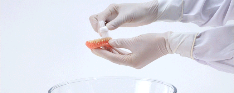 4、冲洗与佩戴:浸泡完成后用清水彻底冲洗假牙,去除残留的清洁片溶液,冲洗干净后即可将假牙戴回口中。