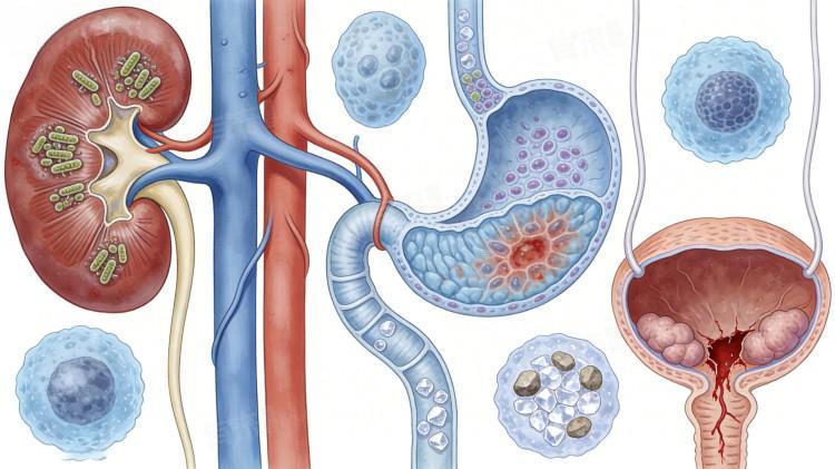 2、尿路结石:结石在尿路内移动时,会摩擦尿路黏膜,导致黏膜破损出血,同时结石刺激尿路平滑肌,引发尿频、尿急。结石体积越小,移动性越强,对黏膜的损伤越明显,出血可能为肉眼血尿,尿频症状随结石位置变化而加重或缓解。