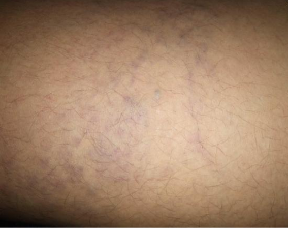 3、长期站立或久坐:长时间保持站立或坐姿,会使下肢静脉回流不畅,血液淤积在腿部血管中,容易导致毛细血管扩张和血液滞留,表现为大腿内侧毛细血管呈网状发紫。经常活动下肢、抬高腿部,促进血液回流,可减轻症状。
