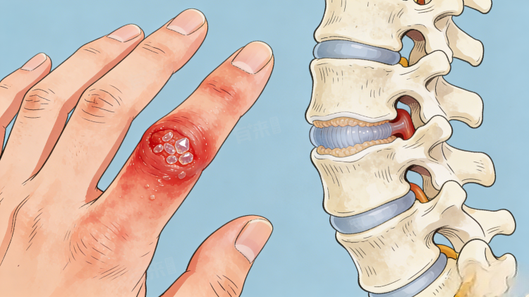 尿酸盐结晶可沉积在腰椎、颈椎周围的肌腱、韧带、滑囊等软组织中,引发局部炎症反应,导致软组织充血、水肿、粘连,进而牵拉脊柱,破坏脊柱的力学平衡,长期可诱发腰椎颈椎的退行性改变,出现疼痛、僵硬等类似腰椎颈椎疾病的症状。