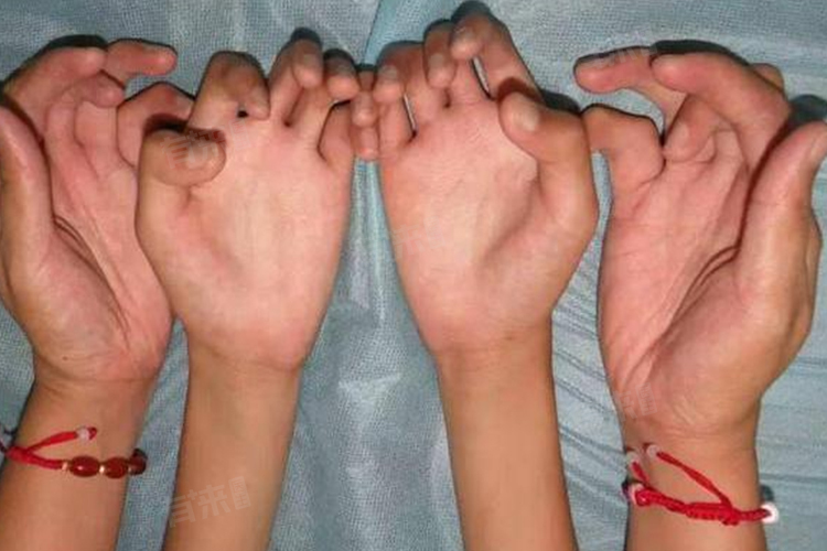 1、多指畸形:多指畸形是一种先天性肢体发育异常,表现为在正常五指之外多出一根手指或指节。额外的手指通常较小且无功能,可能附着于拇指外侧或小指内侧,也可能位于中指与无名指之间。由于多余手指改变了整体手指排列结构,造成视觉上弯曲或不对称的表现。该病源于胚胎期手部芽发育紊乱,基因突变或环境因素均可能诱发此症。