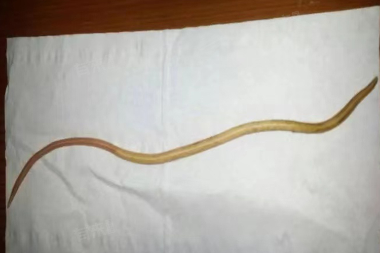 - 体型:蛔虫体型呈圆柱形,两端略尖,中部稍膨大,活时呈粉红色或微黄色,死后呈灰白色。整体长度因寄生环境、营养状况及虫体发育阶段而异,一般长约20-35厘米,甚至可达40厘米以上。