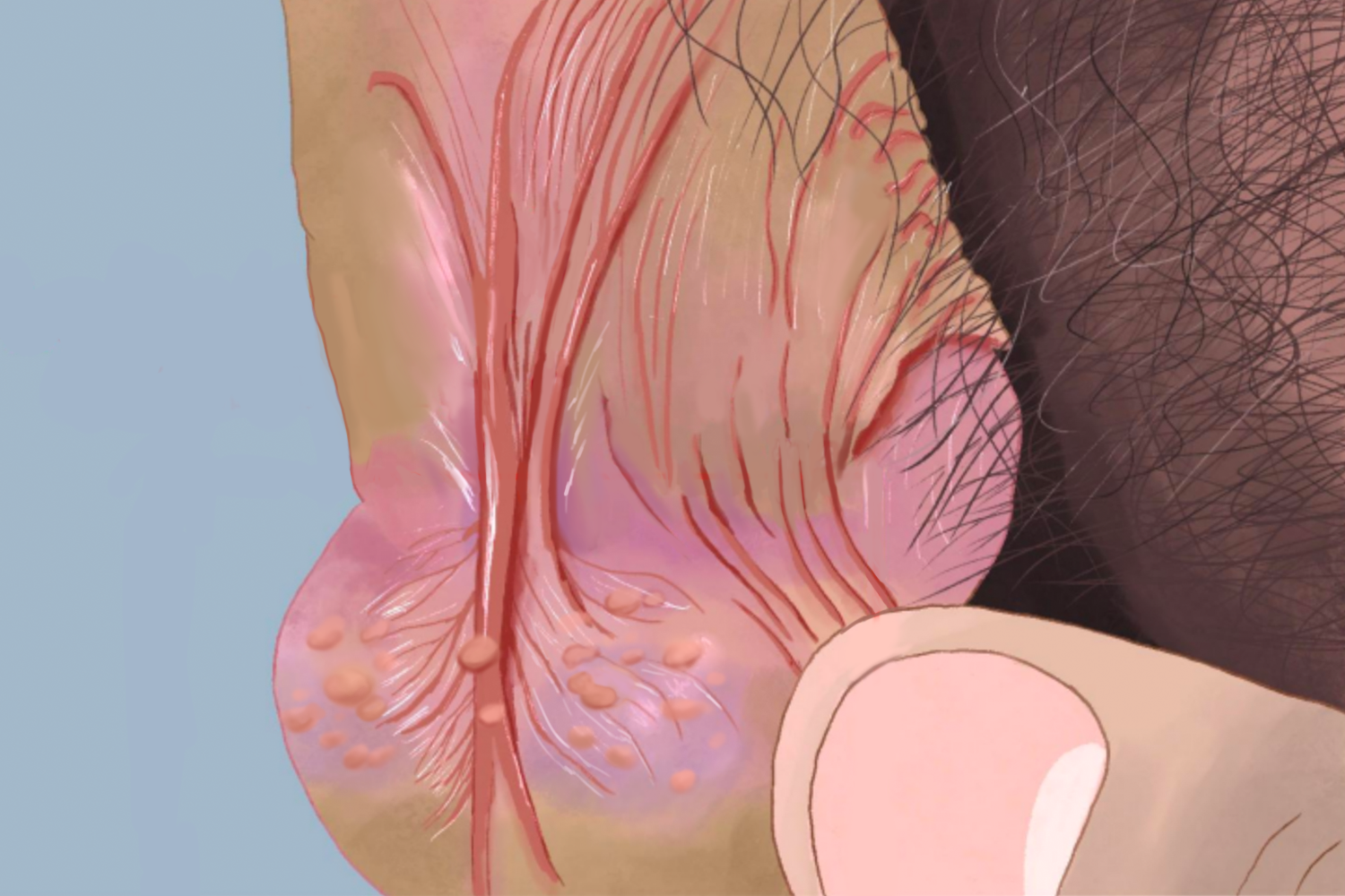 1、正常皮脂腺增生或囊肿:睾丸皮肤上遍布正常的皮脂腺,这些皮脂腺在受到内裤摩擦或潮湿环境下容易增生,形成小囊肿,表现为小痘痘,一般不需要特殊治疗,保持局部清洁干燥即可。