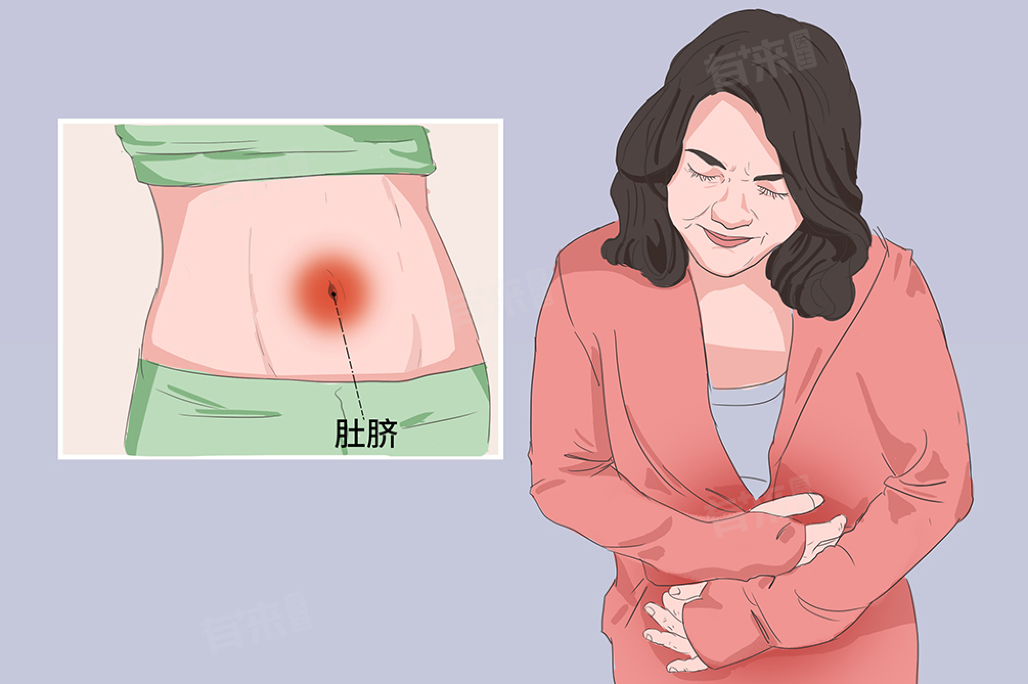 5、妇科疾病:对于女性患者,肚脐周围疼痛可能与妇科疾病有关,如痛经、卵巢囊肿、盆腔炎症等疾病,可能导致下腹部或肚脐周围的疼痛。
