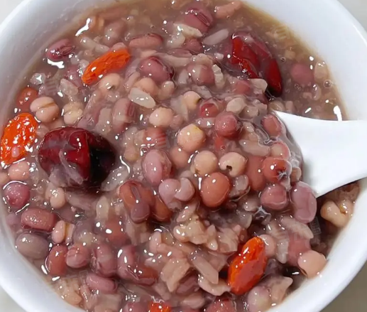 8、红豆薏米粥:红豆和薏米都有利尿、消肿的作用。这款粥适合气血两虚及胃虚弱的人群,有助于排除体内湿气。