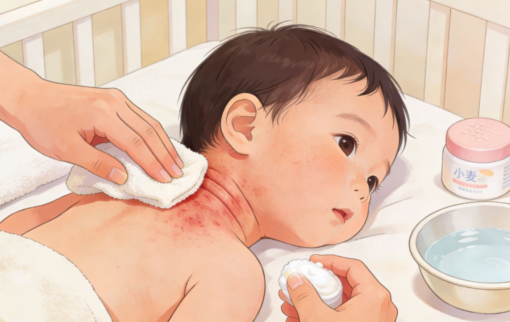 - 湿疹加重:长期闷热、潮湿、摩擦刺激,会诱发或加重颈部湿疹,表现为皮肤出现红斑、丘疹、瘙痒,宝宝会因不适抓挠,进一步损伤皮肤,形成恶性循环,需针对性护理与用药缓解。
