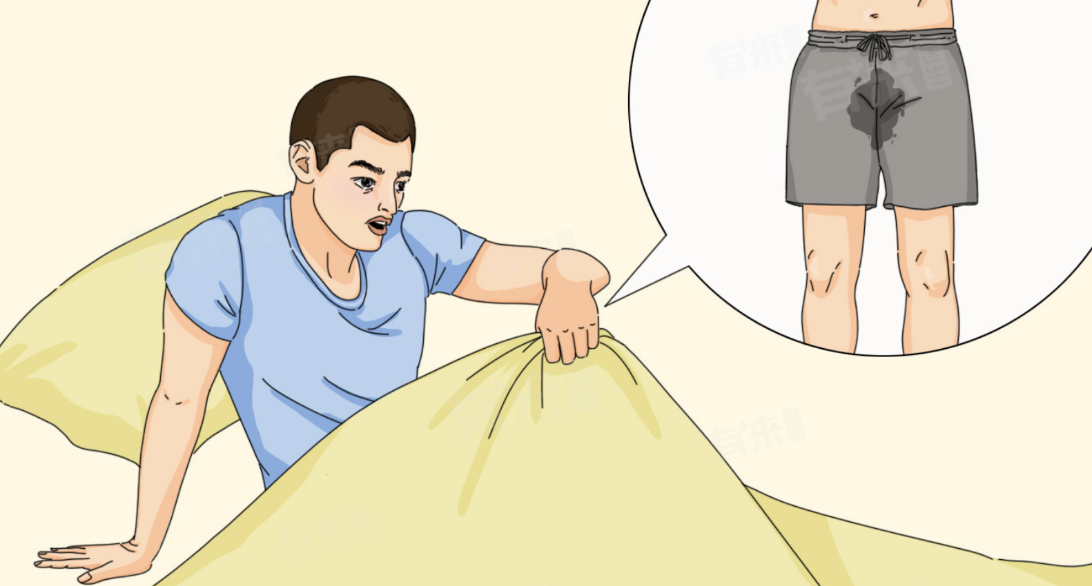 - 生理性遗精:男孩在青春期后,特别是生长发育期间,会出现生理性遗精,这是男性性成熟的重要标志之一。遗精时,精液可能会沾湿内裤,导致内裤湿了一块。如果没有其他异常症状,不需要特殊处理,但需注意保持局部卫生。