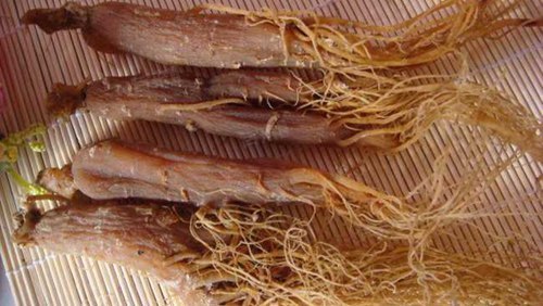 - 红参呈仿锤或圆柱形,表面半透明,呈红棕色,且有分支。质地坚实,断面平坦,气微香而特异,味甘、微苦。