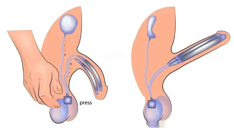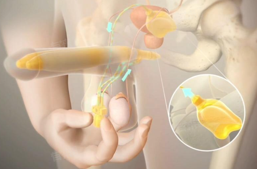 - 阴茎假体植入是一种用于治疗勃起功能障碍的手术方法,假体通常由两个可膨胀的圆柱体、一个储液囊和一个泵组成。手术时将圆柱体植入阴茎海绵体内,储液囊放置在盆腔内,泵则位于阴囊内。通过挤压泵,液体从储液囊流入圆柱体,使阴茎勃起。