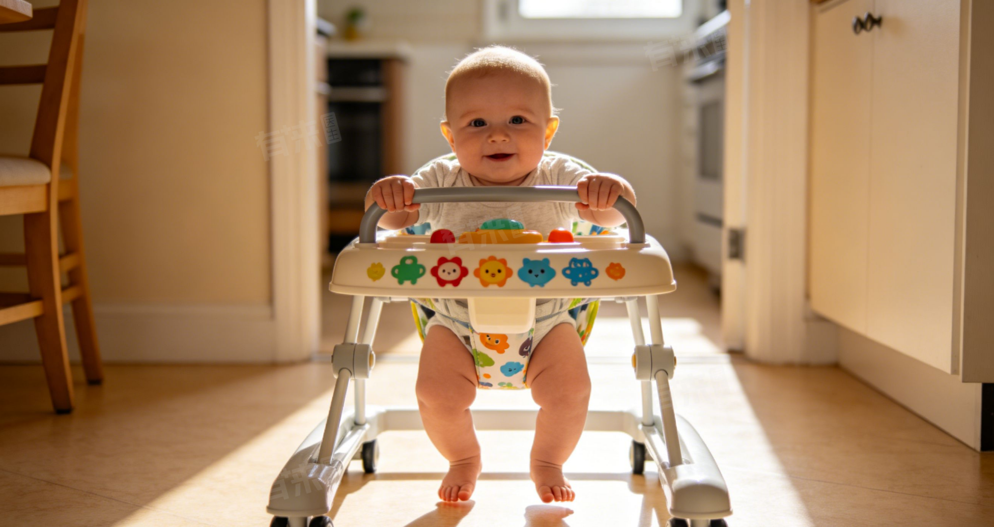 选择高度合适的学步车,宝宝站立时,双脚能平稳落地,膝盖自然弯曲,避免过高或过低;学步车底部需有防滑设计,车身稳固,避免倾倒。宝宝使用学步车时,需在平坦、空旷的环境中,清除周围的尖锐物品、障碍物,大人全程在旁监护,避免宝宝碰撞、摔倒,确保安全。