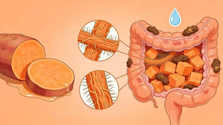 3、饮水不足:红薯中的膳食纤维需充足水分才能发挥促进肠道蠕动的作用,若食用红薯时饮水不足,膳食纤维无法软化粪便,会导致粪便干燥、坚硬,难以排出,进而引发便秘,与肠道水分缺乏、粪便干结相关。