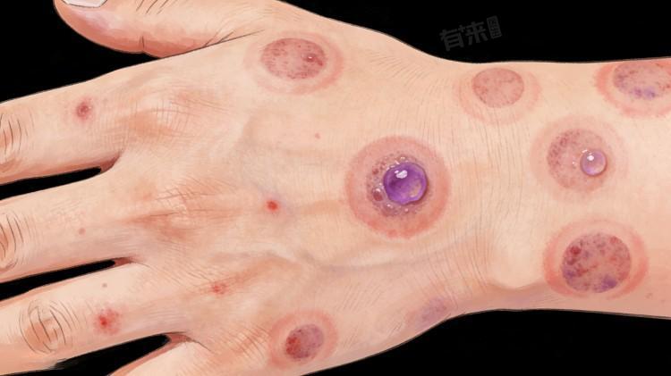 2、病毒感染:常见病因,多由单纯疱疹病毒、流感病毒、EB病毒等感染引发,病毒感染后诱发机体免疫反应,导致皮肤出现多形红斑。治疗需抗病毒治疗,口服阿昔洛韦、更昔洛韦等抗病毒药物,外用阿昔洛韦乳膏,搭配抗组胺药物缓解瘙痒,控制感染后皮疹逐渐消退。
