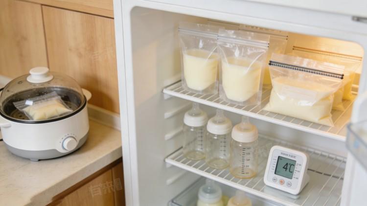 2、冷藏中长期保存:针对24-72小时内食用的母乳,将密封好的母乳置于冰箱冷藏室,温度恒定在0-4℃,优先放置冰箱内侧中层,避开冰箱门置物架,减少频繁开关门导致的温度波动,新鲜挤出的母乳需单独存放,不可与已解冻乳汁混合,储存时长控制在72小时内。