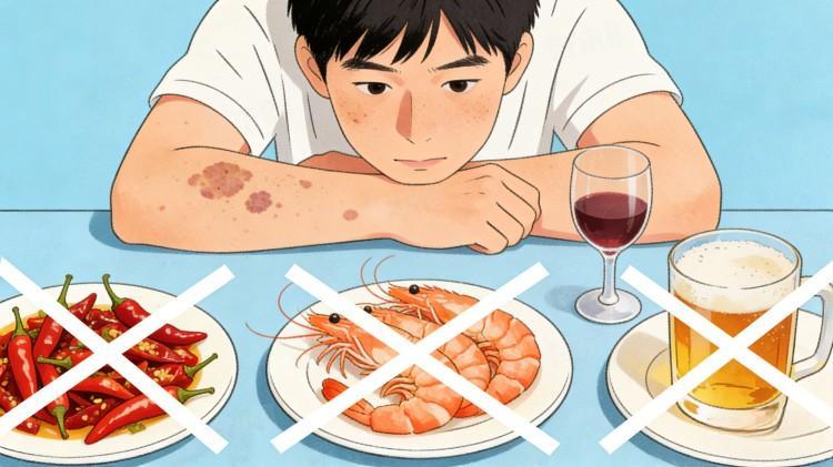 3、海鲜类食物:海鲜类食物属于易过敏食物,部分白斑患者本身属于过敏体质,食用后可能引发过敏反应,刺激皮肤,导致白斑扩散,同时海鲜类食物也可能影响免疫系统功能,加重自身免疫紊乱,常见的有鱼、虾、蟹、贝类、海带等,白斑患者需谨慎食用,明确过敏的需完全忌口。