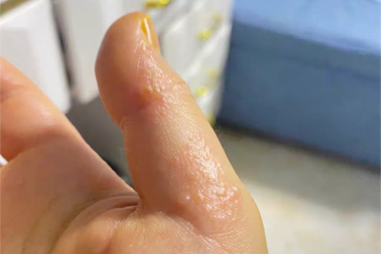4、过敏:手部皮肤过敏可能导致手指上出现水泡并伴有瘙痒症状。手经常受到物理和化学刺激,如接触热水、肥皂、洗衣粉和洗涤剂等,或者一些特殊职业的人群会经常接触发动机机油和化学试剂。