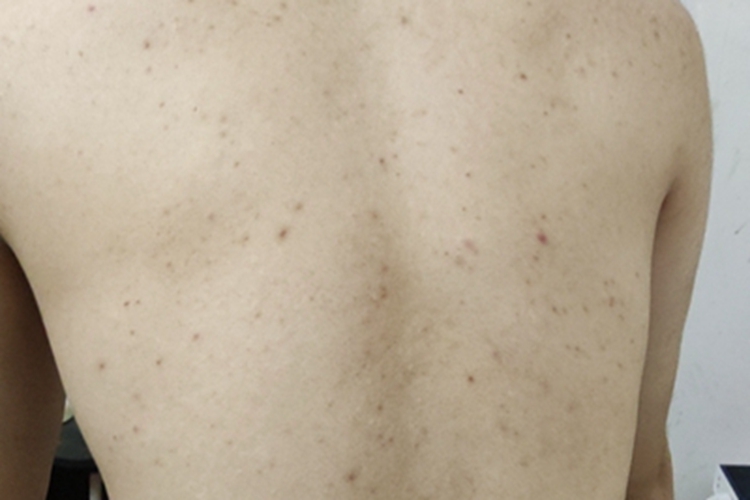 - 自身免疫力低下,背部皮肤接触到过敏原后,可能引发荨麻疹,出现瘙痒、红斑、丘疹等症状。