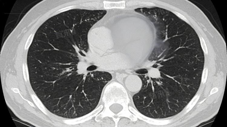 4、真菌性肺炎:肺部感染曲霉菌等真菌,引发局部慢性炎症,肺泡内出现真菌菌丝、炎性渗出及组织增生,形成毛玻璃影,可伴随少量结节,边界欠规整,多见于免疫力偏低人群,抗炎治疗无明显改善。