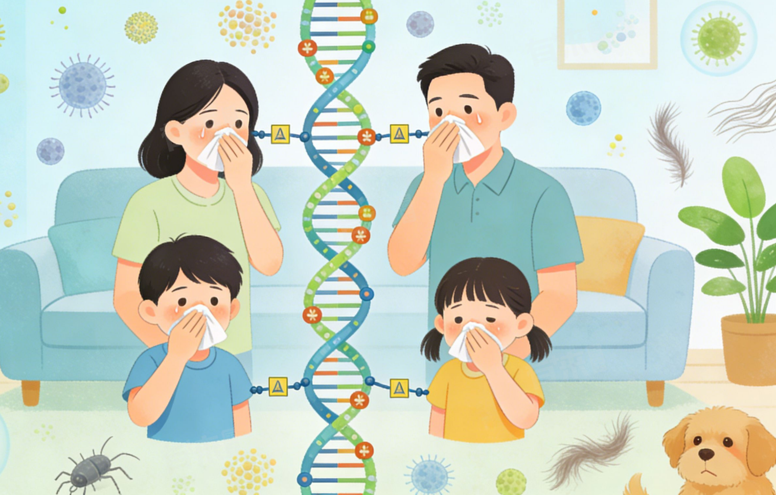过敏性鼻炎的遗传核心在于过敏体质的遗传,过敏体质由多个基因共同调控,并非单一基因决定。若父母一方患有过敏性鼻炎,子女遗传过敏体质的概率为30%-50%;若父母双方均患病,子女患病概率可高达50%-70%。