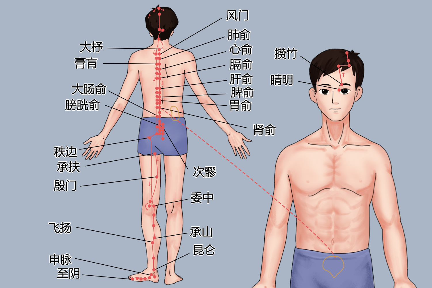 1、 捏脊疗法:涉及用双手连续捏拿背部脊柱区域的皮肤,能够有效地激活膀胱经,尤其是对于儿童来说,经常进行捏脊可以帮助调节五脏六腑的精气,促进健康成长。