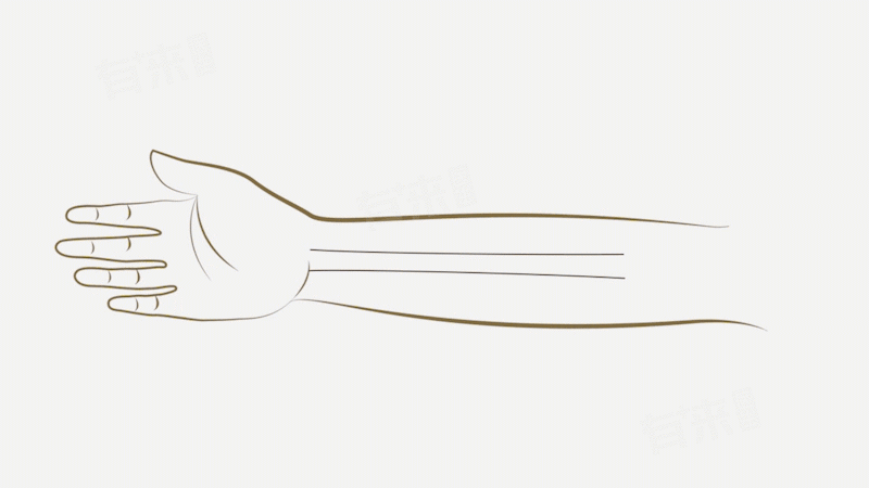 - 取穴方法:伸臂仰掌,于掌后第一横纹大陵穴直上5寸处,当掌长肌腱与桡侧腕屈肌腱之间取穴。