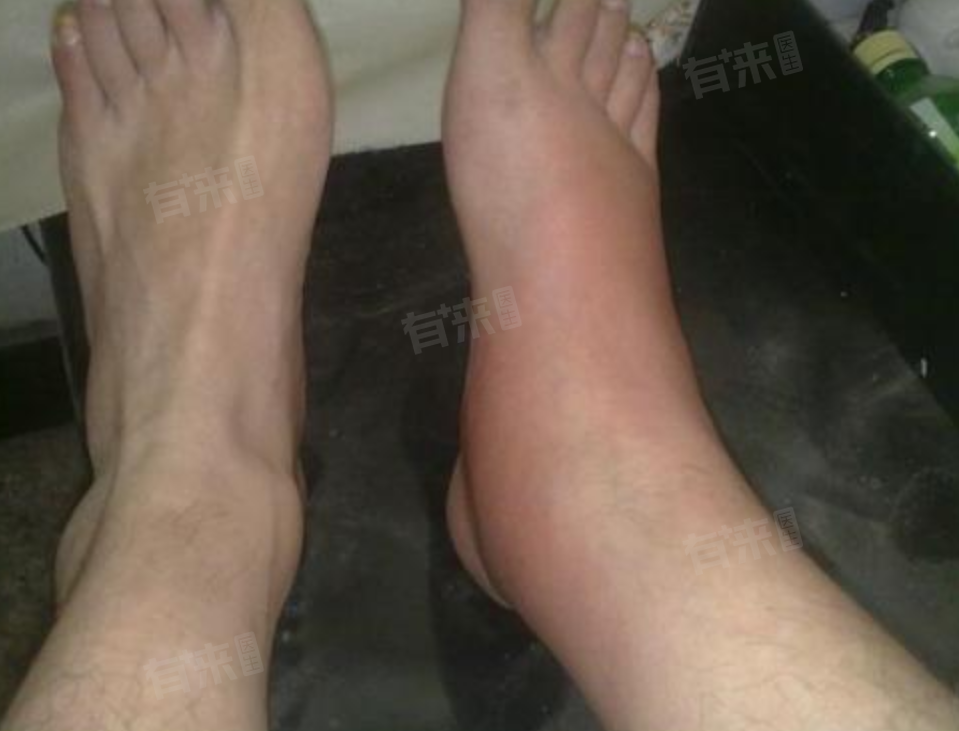 - 痛风:尿酸盐结晶沉积在踝关节,引发急性炎症反应,表现为关节红肿热痛。