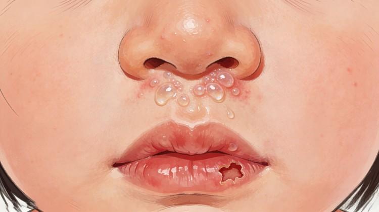 小儿热疮是小儿时期常见的一种急性皮肤病,主要由单纯疱疹病毒感染引起,以皮肤黏膜出现成群水疱、伴有轻微瘙痒或灼热感为主要表现,好发于口唇、口周、鼻孔周围等部位。